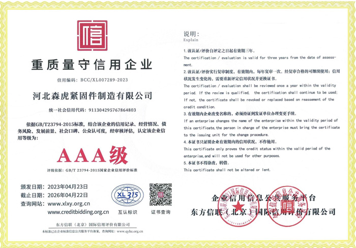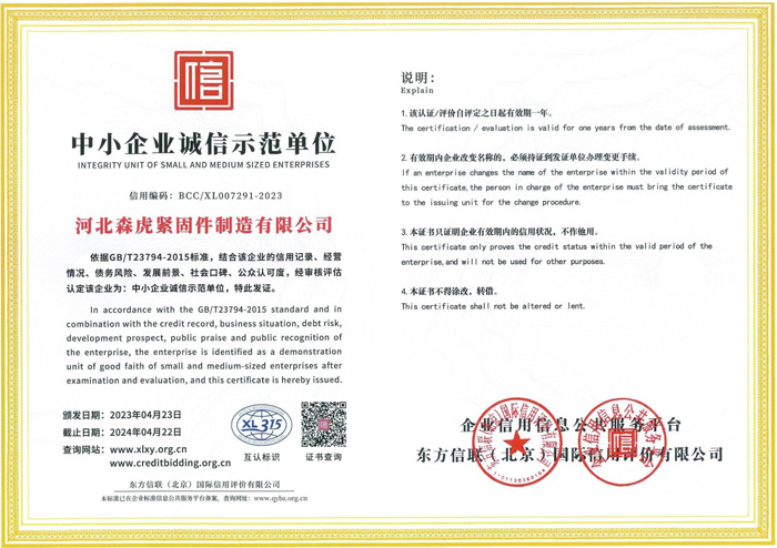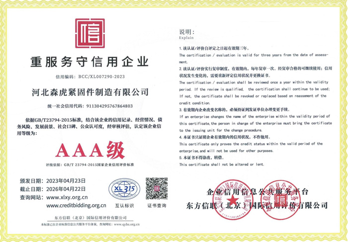河北森虎緊固件制造有限公司成立于2011年,是建廠較早的緊固件企業。西臨京廣線,東臨京深高速,地理位置優越,交通便利。 主要生產:化學錨栓、機械錨栓、定型化學錨栓、高強度8.8級化學錨栓、自切底機械錨栓、車修壁虎,膨脹螺栓,植筋膠。 質量方針:先進技術、科學管理、優良品質、用戶滿意; ...